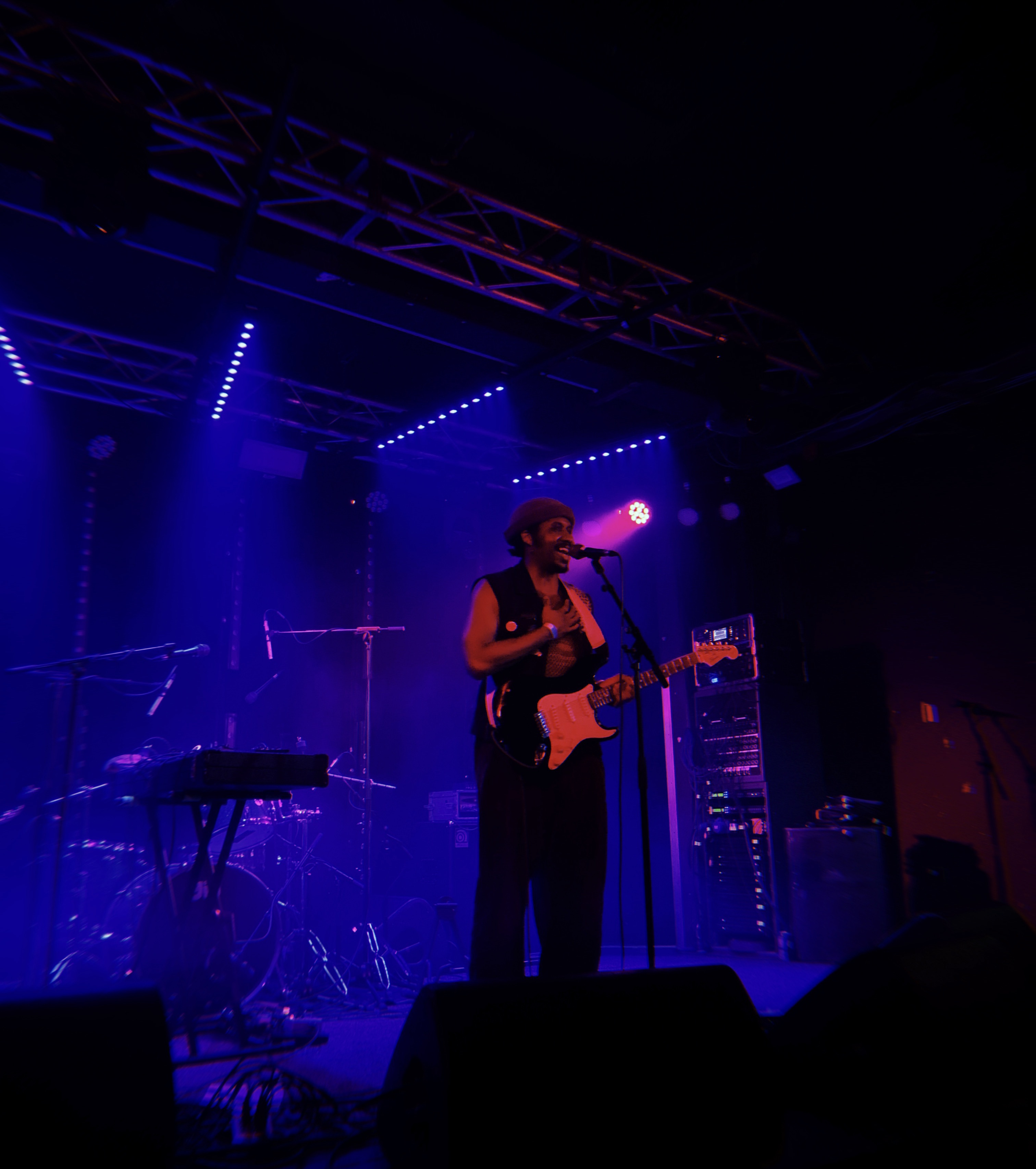 Before they started, there was a sense of palpable, agonising anticipation as onlookers clutched pints, watching Rob and the rest of the band wire instruments up and soundcheck. Then it quickly became wild. Like liquid, frontman Tom was throwing himself around onstage and down in the crowd, having a quick mosh, and uncontrollably head-banging. This was proper rock ‘n’ roll from serious professionals who’ve stayed magnificently humble. But you can bet it made them hard to photograph with just an iPhone! So you’ll have to take my word for it — their set was fire. Opening with the impossibly slick ‘The Big What If’, not a soul was unstirred. ‘Rinse and Repeat’, ‘I Punched a Lion in the Throat’ and ‘High Five, Swan Dive, Nose Dive’ riled us all up further and were just monstrously good. With the heavy shredding, booming bass strings and thunderous drums alongside those course, shrieked vocals, every member of PABH vied for your attention and it made them such a collective joy to watch.